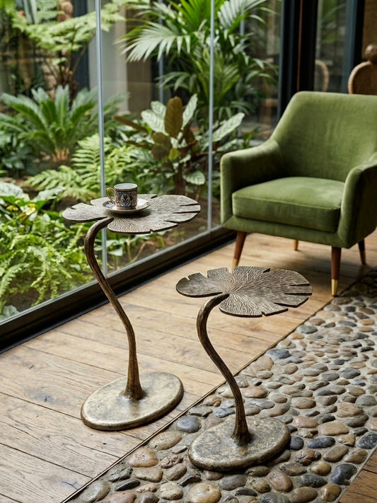 Monstera Alüminyum Döküm Metal Yaprak Form Özel Koleksiyon 2’li Yan Sehpa