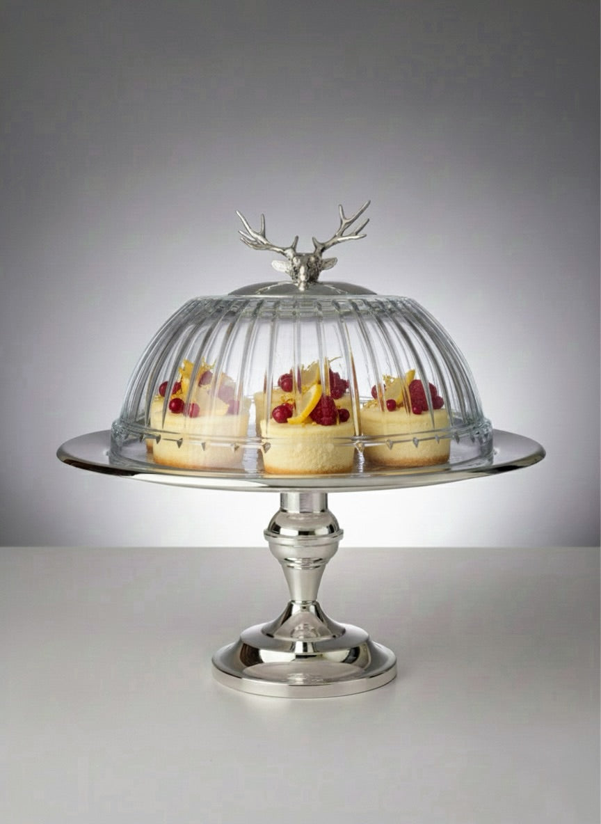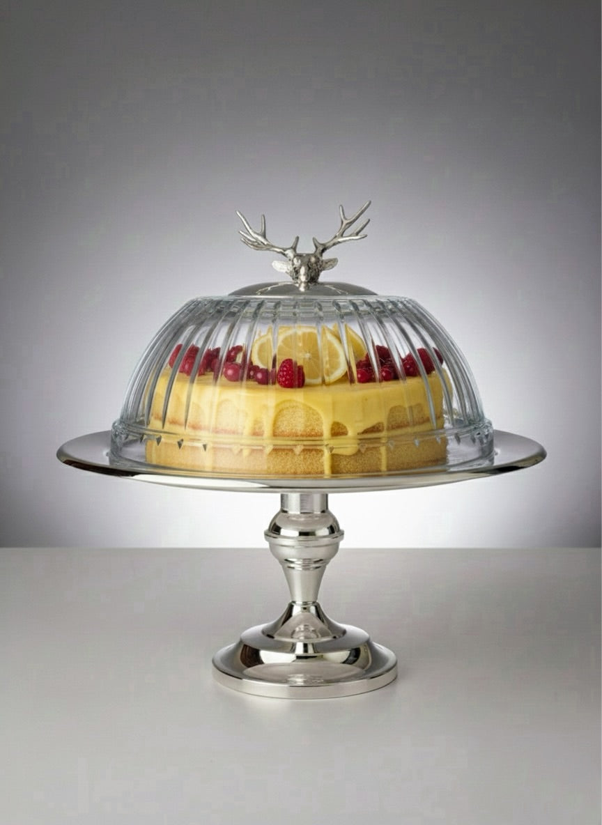 Elegantia Gümüş Kaplama & Kesme Cam Pasta Standı