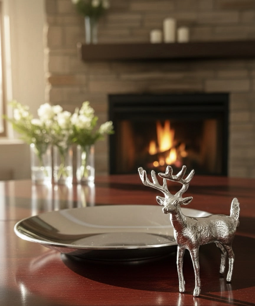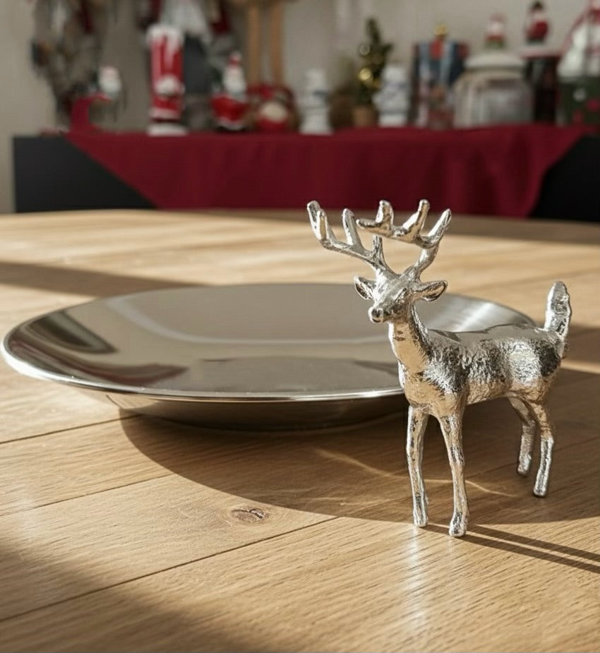 Geyik figürlü paslanmaz üzeri gümüş kaplama sunumluk