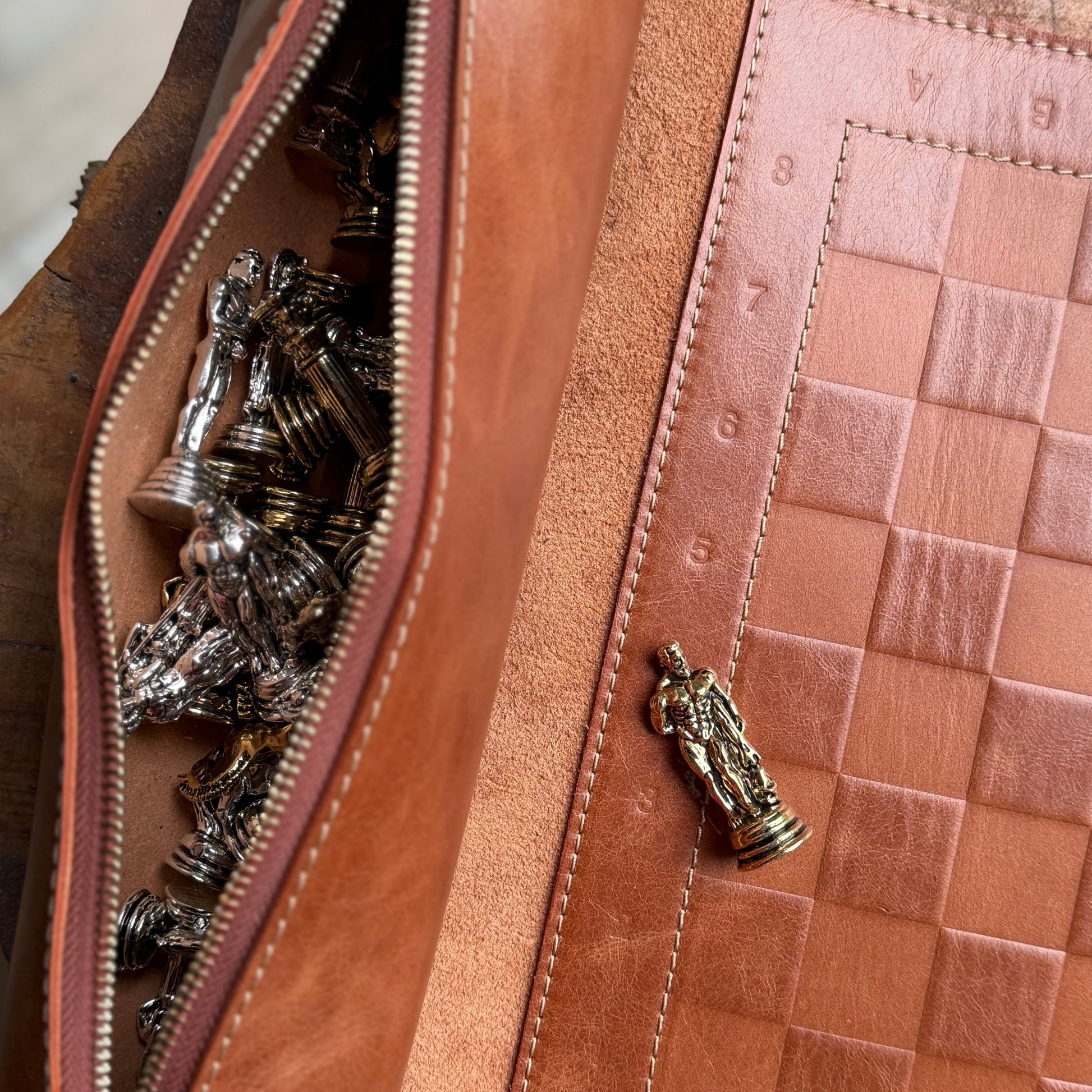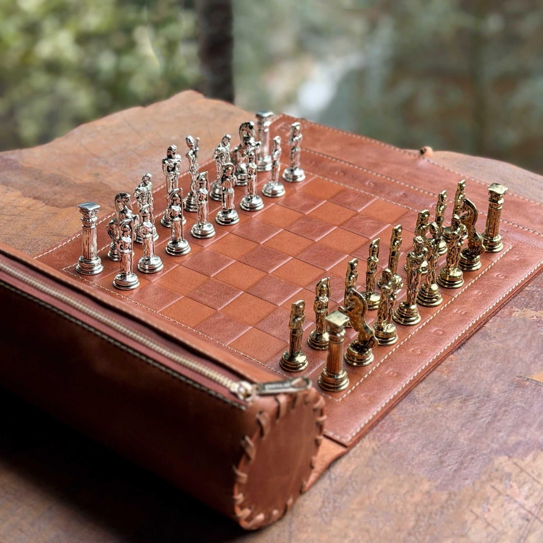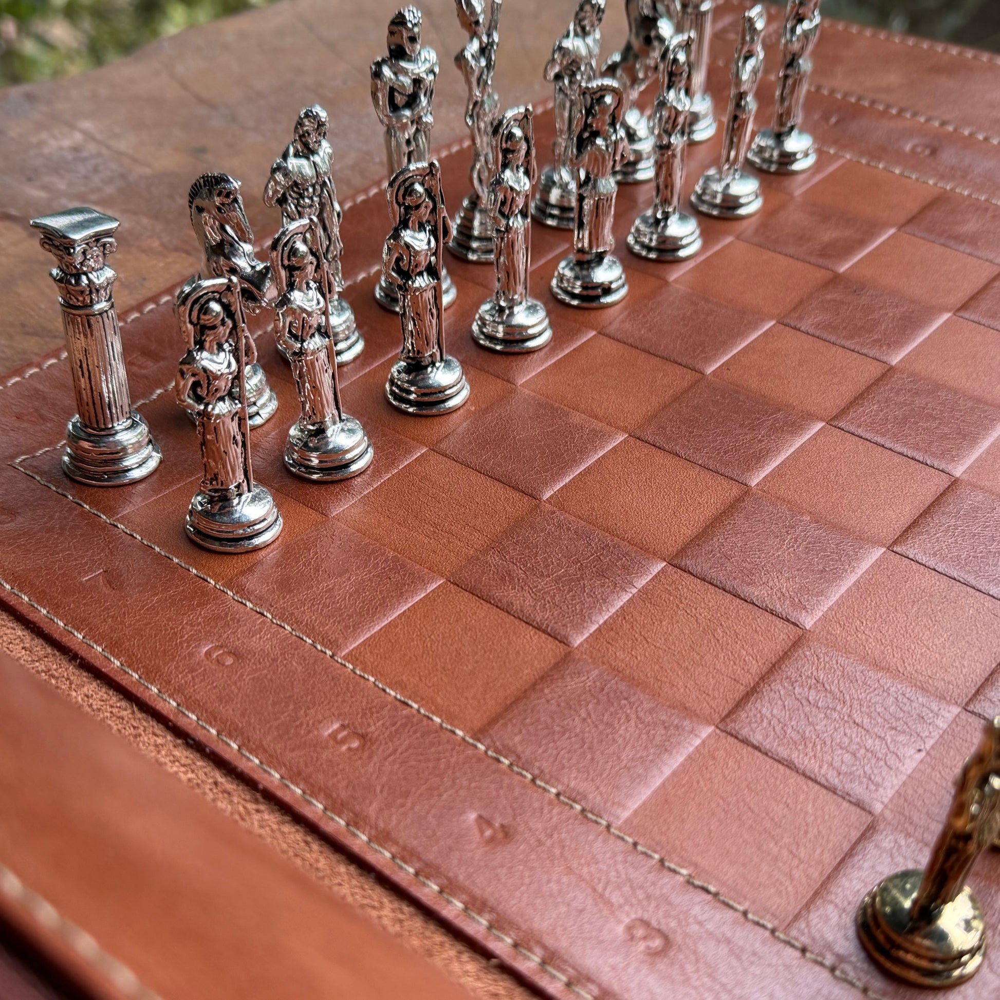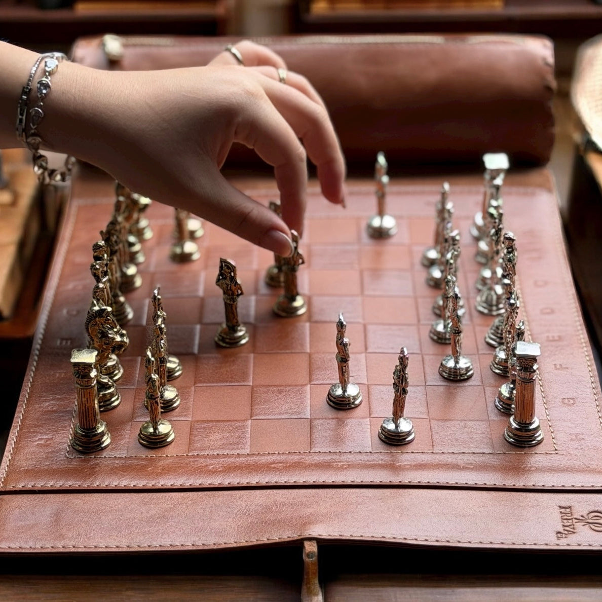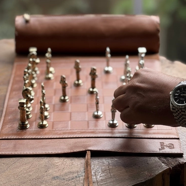 Zarafet ve ustalığın buluştuğu bu el yapımı deri satranç takımı, oyun keyfini lüks bir deneyime dönüştürür