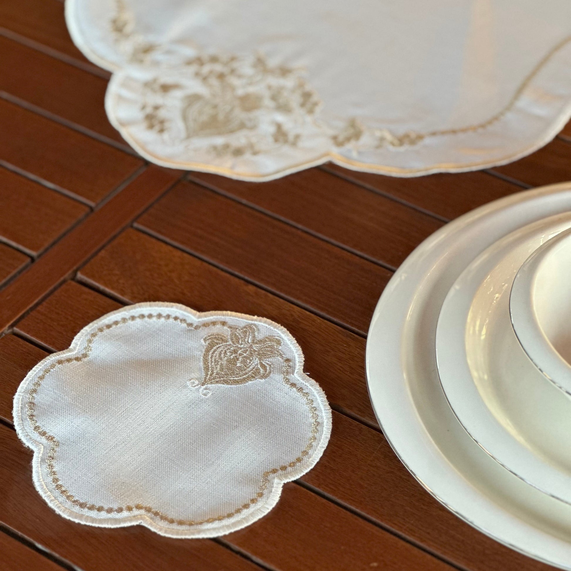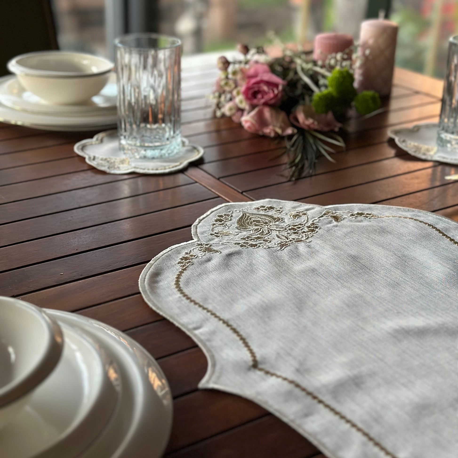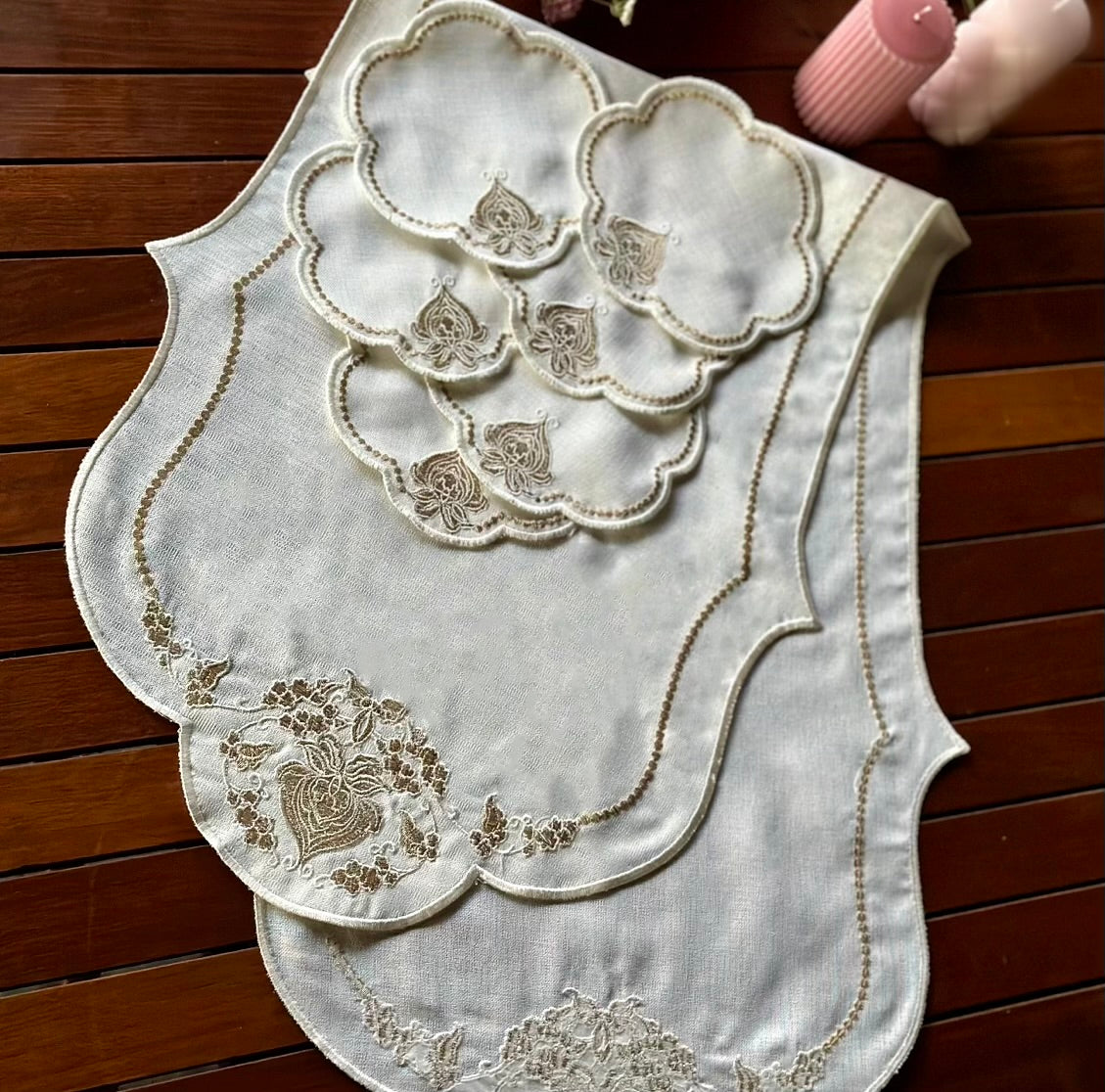 Revera Nakış İşlemeli Runner & 6'lı Bardak Altlığı