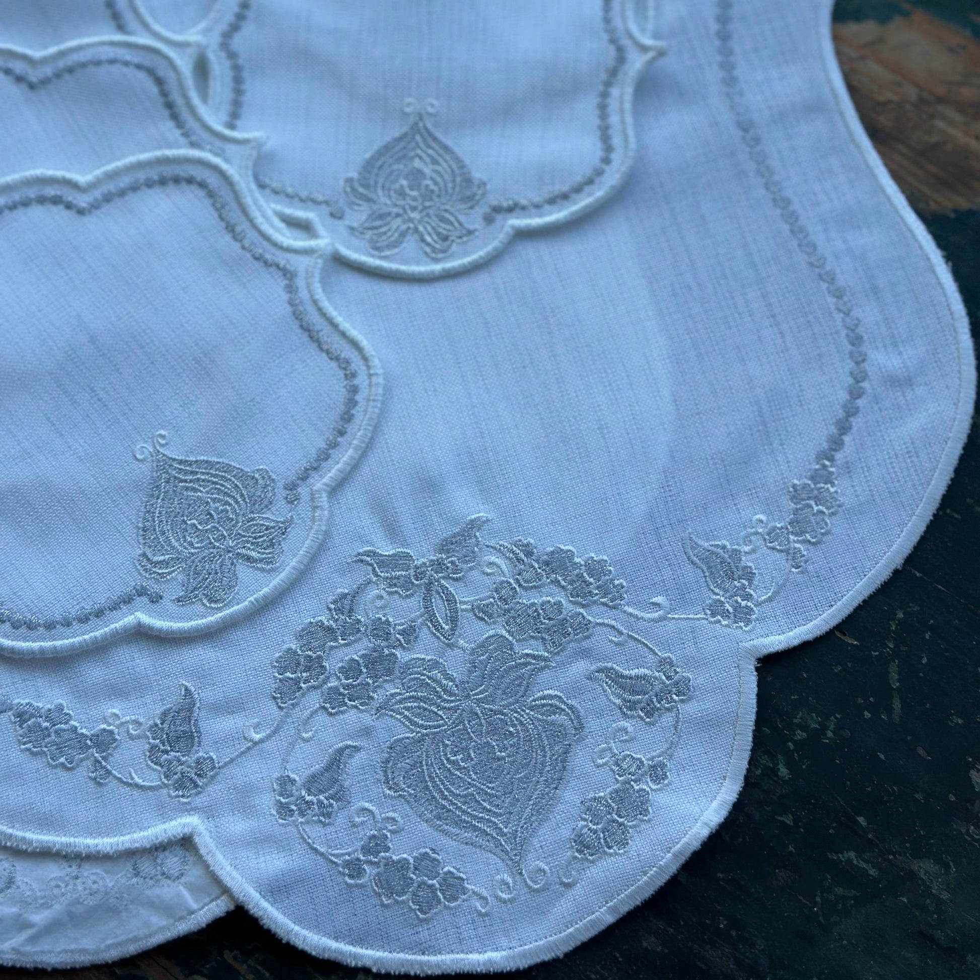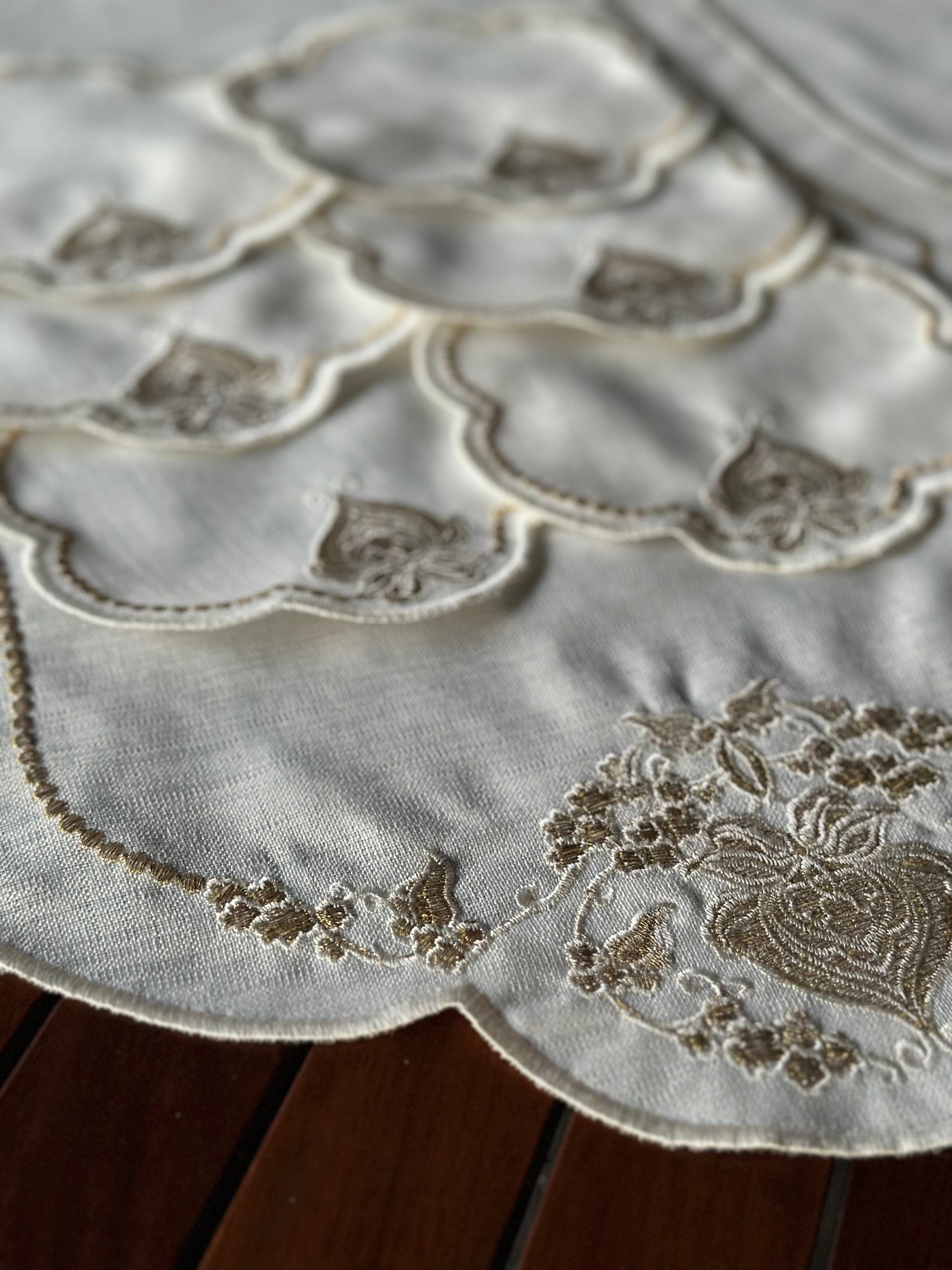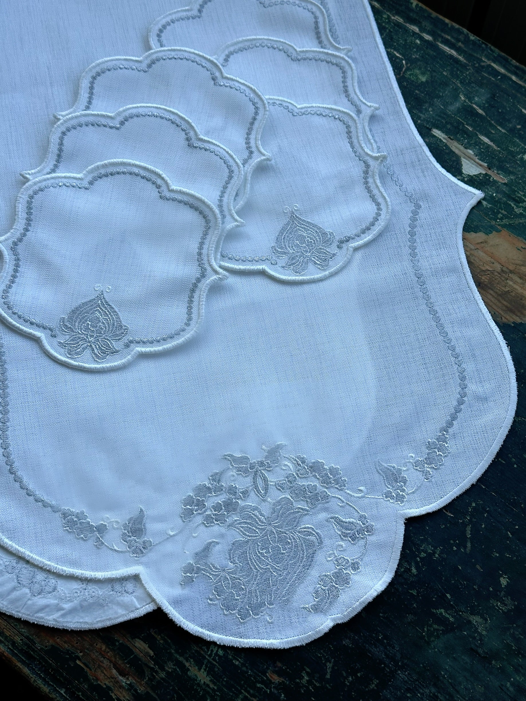 Revera Nakış İşlemeli Runner & 6'lı Bardak Altlığı