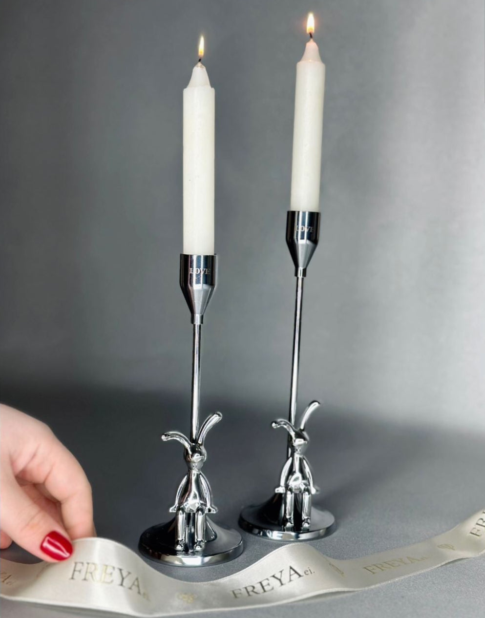 • Tavşan, şamdanın ön kısmında bulunan plastik bir dekor olup, boyutların çeşitliliğine bağlı olarak küçük ve sevimli bir şekilde yapılmıştır.