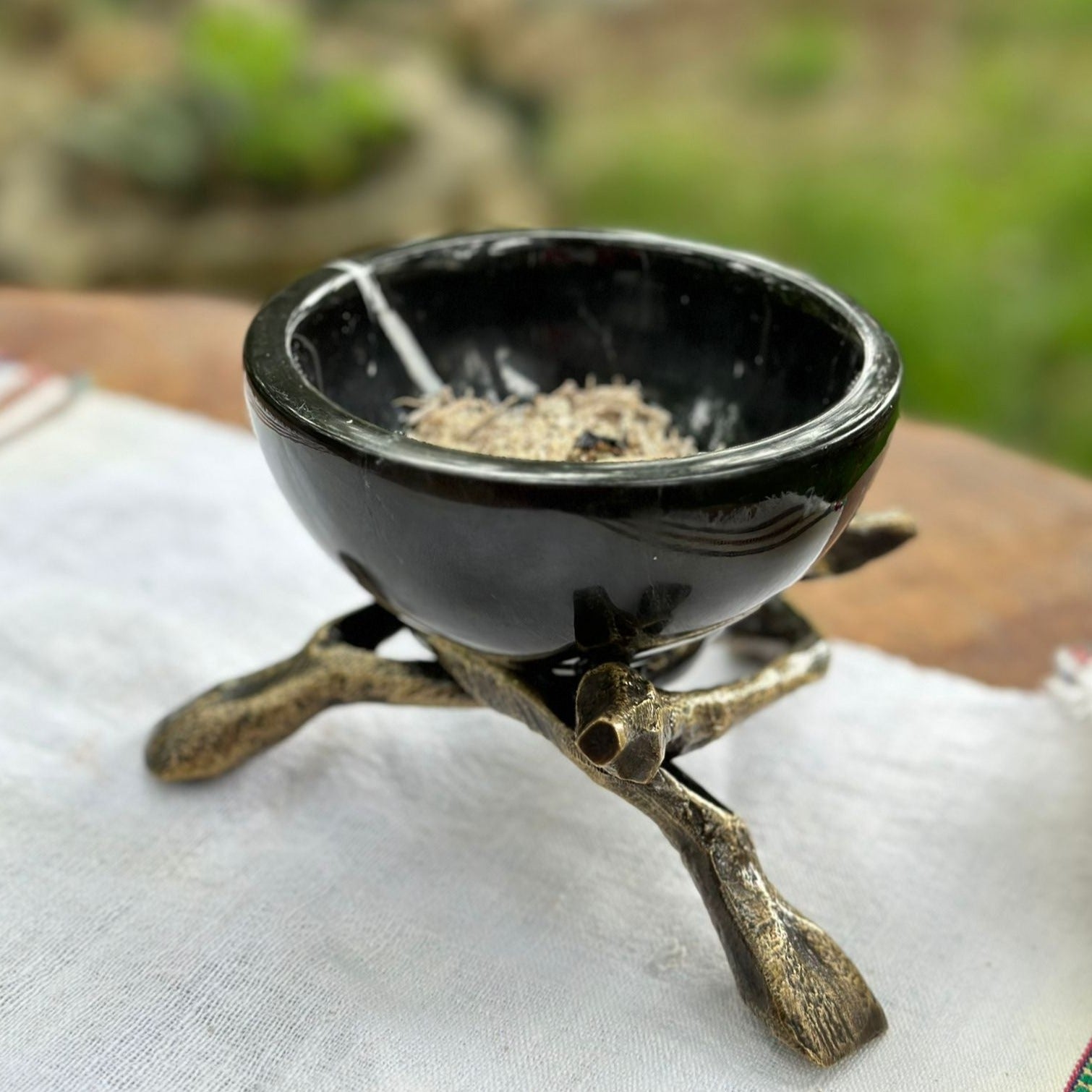 A: Sigyn Tütsülük, alt gövdesi gerçek ağaçtan kalıp alınmış pirinç döküm üzerine ve doğal ithal dark mermerden üretilmiştir. Üst kısmı, özellikle dayanıklılık ve estetik bir görünüm için kaliteli mermer ile tamamlanmıştır.