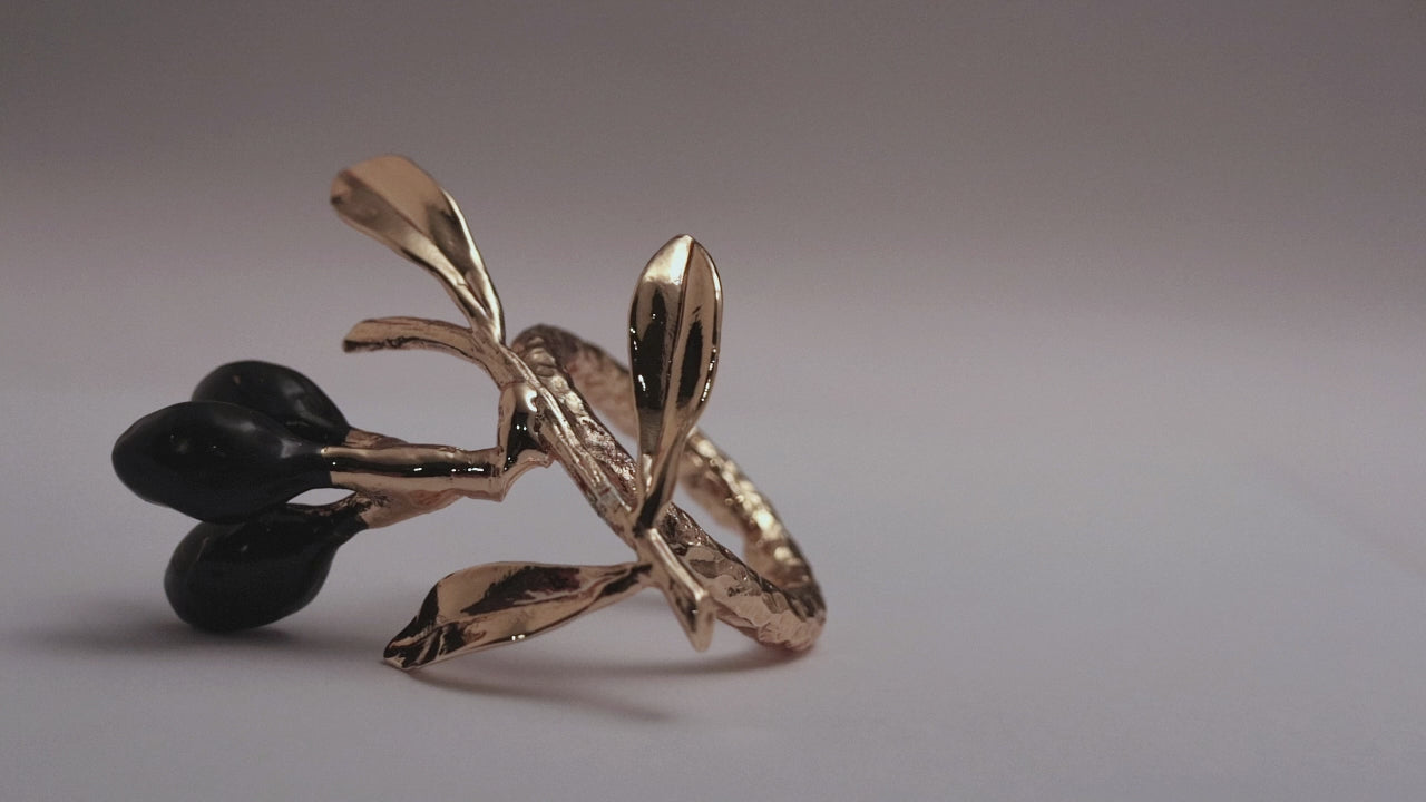 A: Freyaei Zeytin Figürlü Peçete Halkası, özel olarak tasarlanmış, pirinç döküm malzeme üzerine altın kaplama uygulanmış ve üzerinde şık zeytin detayları bulunan siyah renkli, yuvarlak bir peçete halkasıdır. Bu benzersiz tasarım, sofralarınıza zarafet ve stil katmak için mükemmeldir.